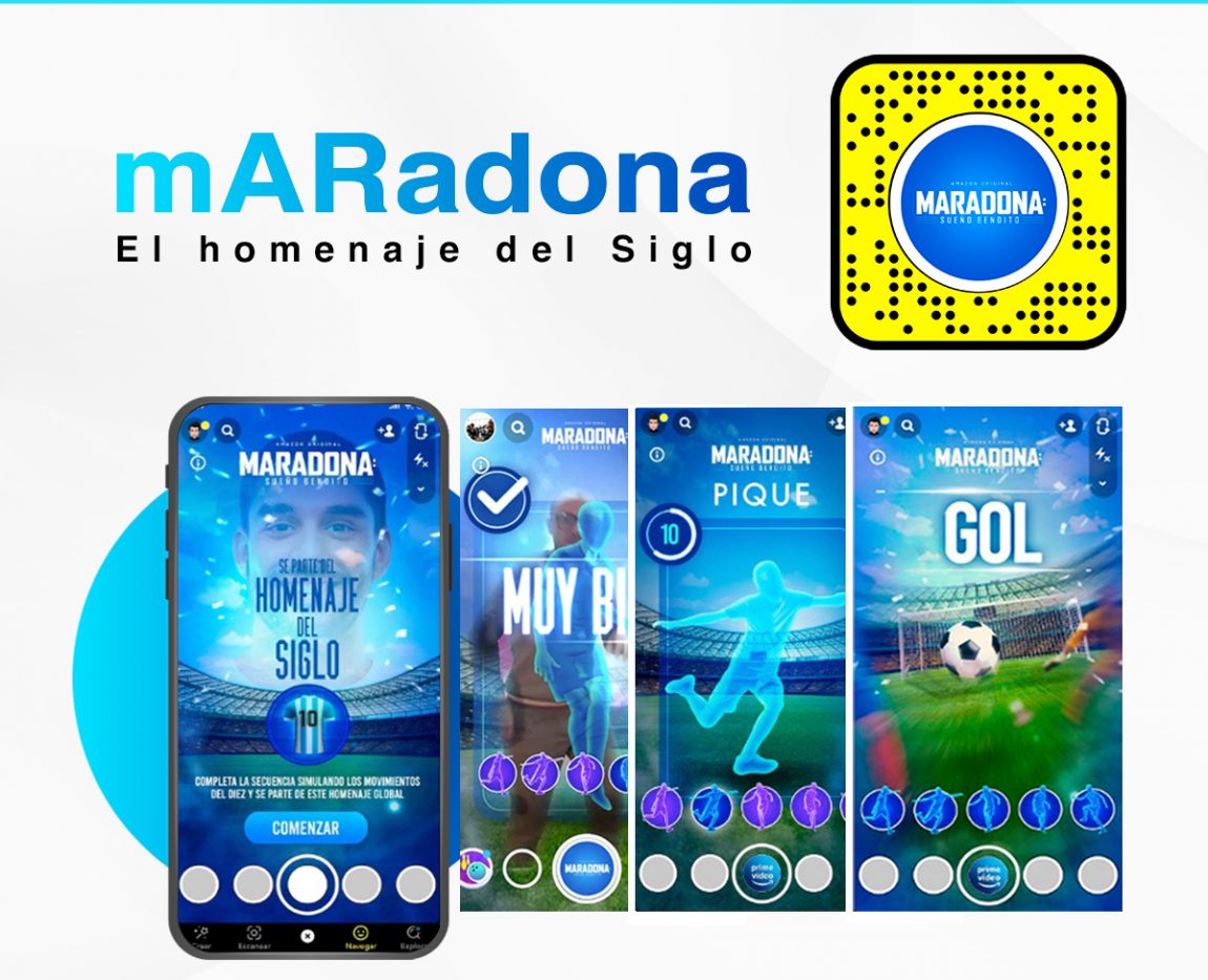Una activación experiencial de vanguardia que celebra el “Gol del siglo” de Diego Maradona, la lente permitió a los usuarios de Snapchat simular y experimentar físicamente las imágenes y los sonidos de “El Diez” cuando anotó su legendario gol en el Estadio Azteca en 1986 como en casa. Los espectadores pudieron recrear cada uno de los cinco gestos característicos del atleta, la tecnología de seguimiento corporal de realidad aumentada de Snapchat leyó y registró los movimientos corporales de los participantes. Los jugadores que intentaron ganarle al reloj y avanzar fueron obsequiados con la grabación original de “La mano de Dios”, interpretada por el cantante argentino Rodrigo, en homenaje a Maradona. Los usuarios de Snapchat que imitaron con éxito a Maradona fueron animados por una voz en off que celebraba su gran victoria.